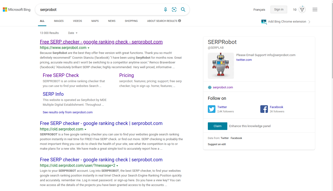 The Bing project type searches the default Bing organic search results.