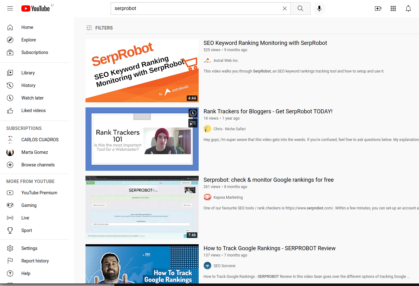The YouTube project type searches the YouTube search results.